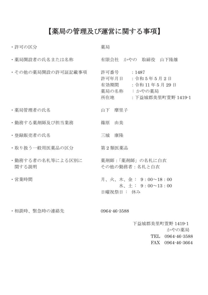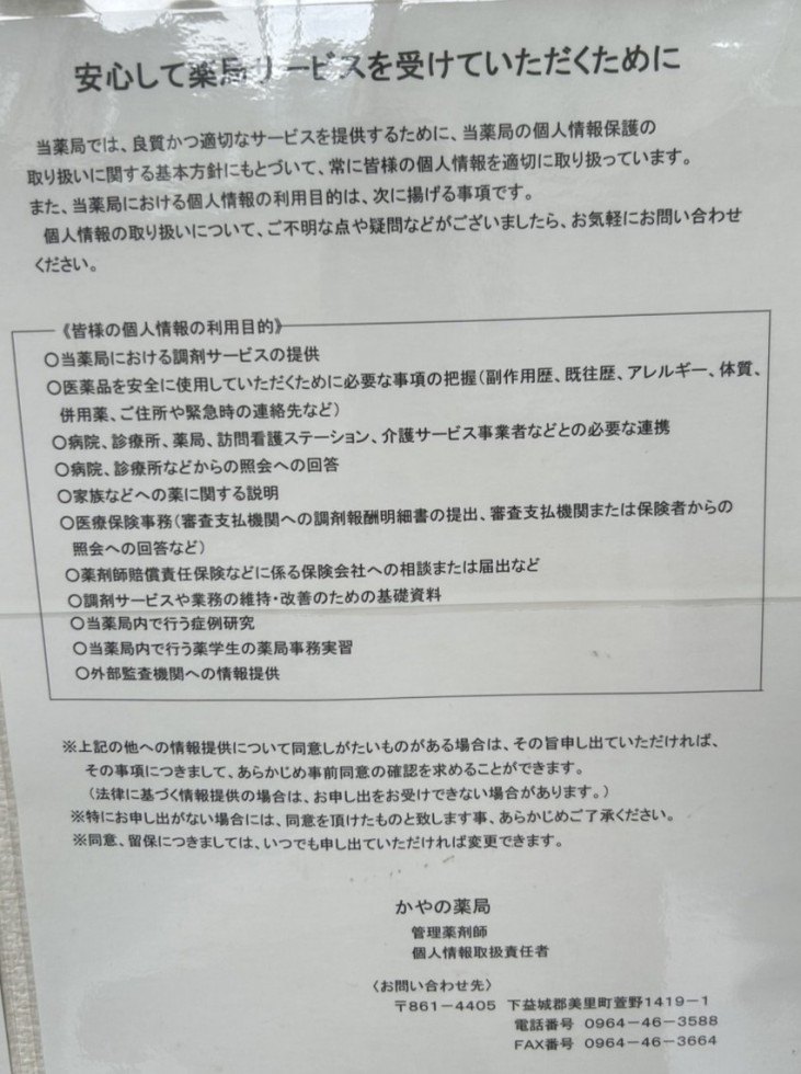 かやの薬局からのお知らせ