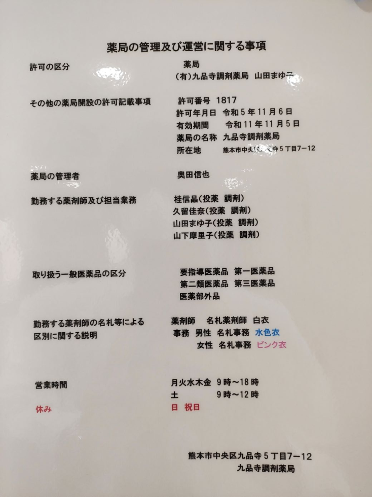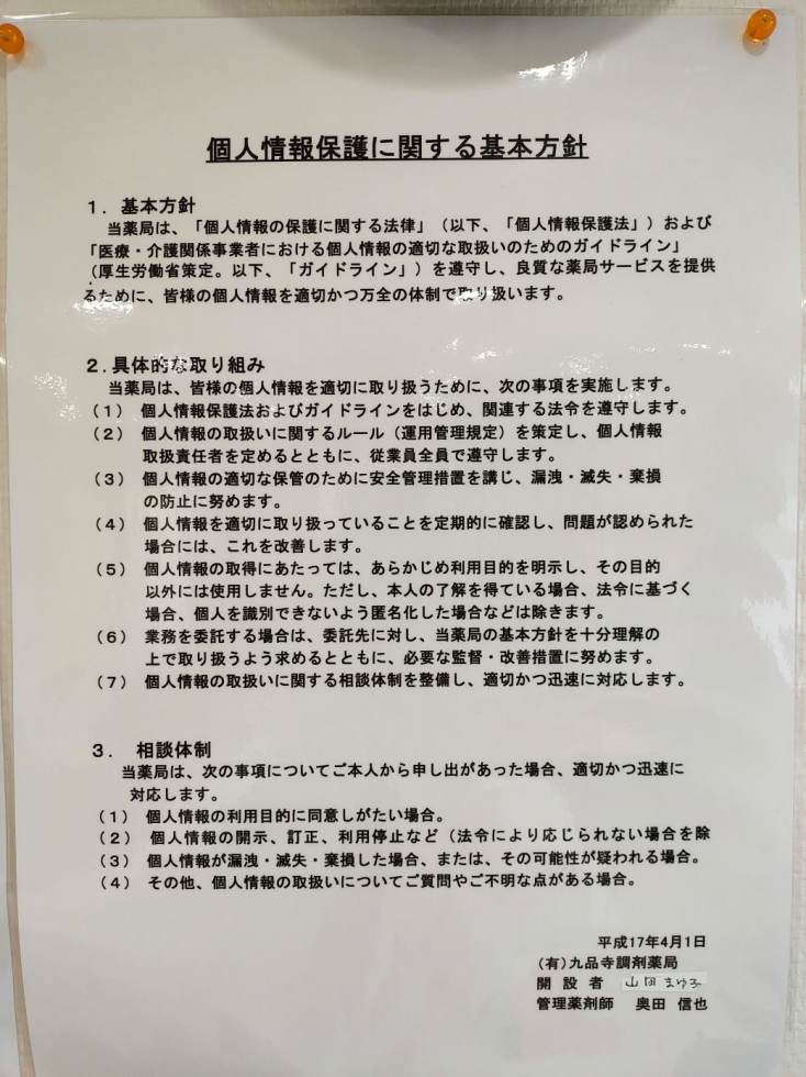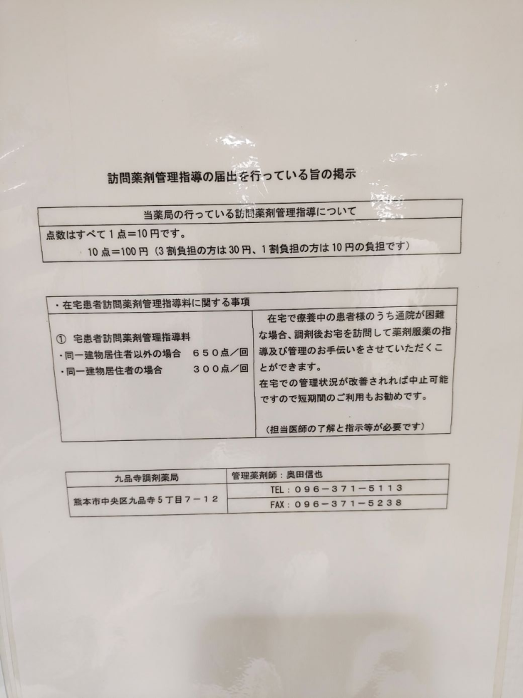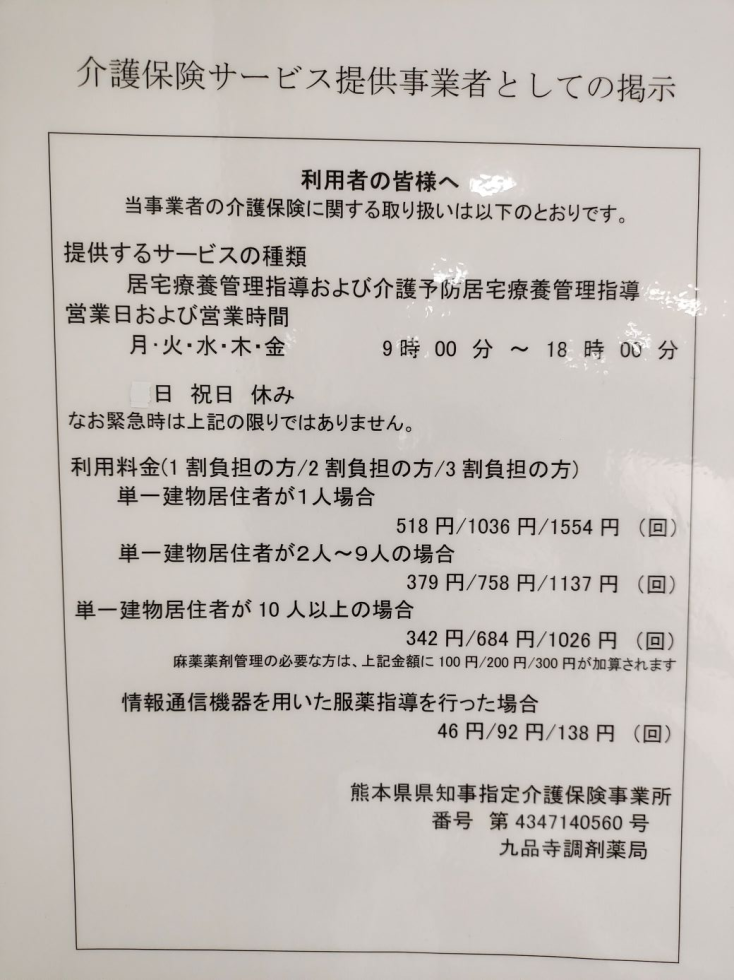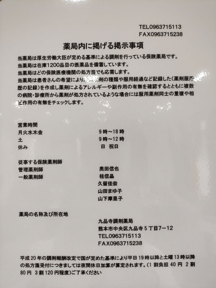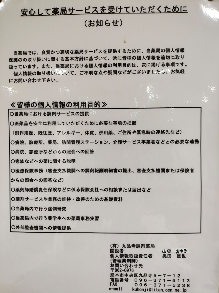 九品寺調剤薬局からのお知らせ