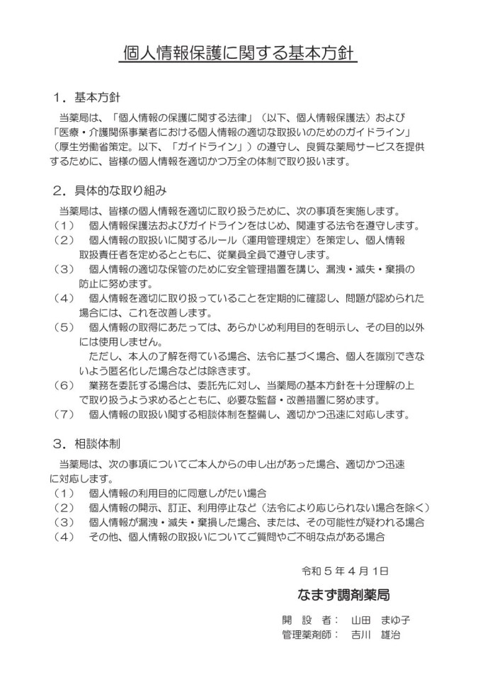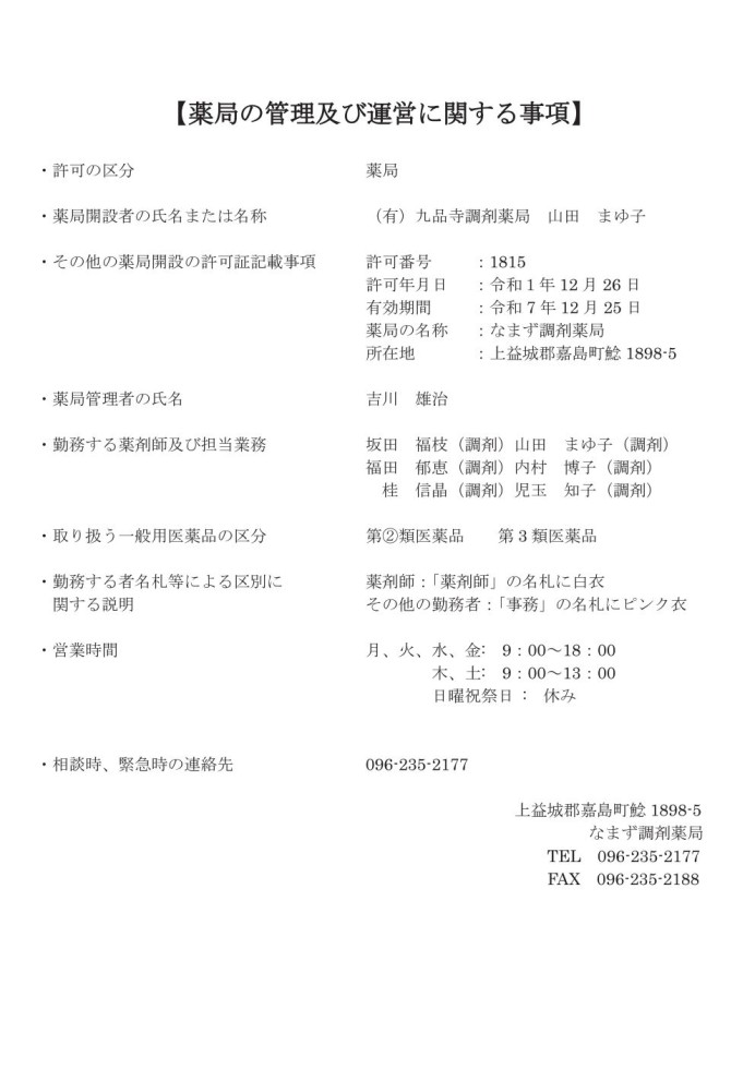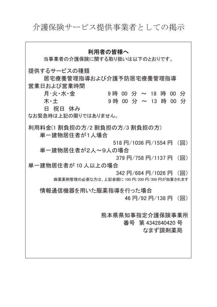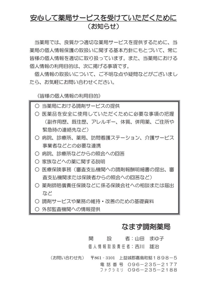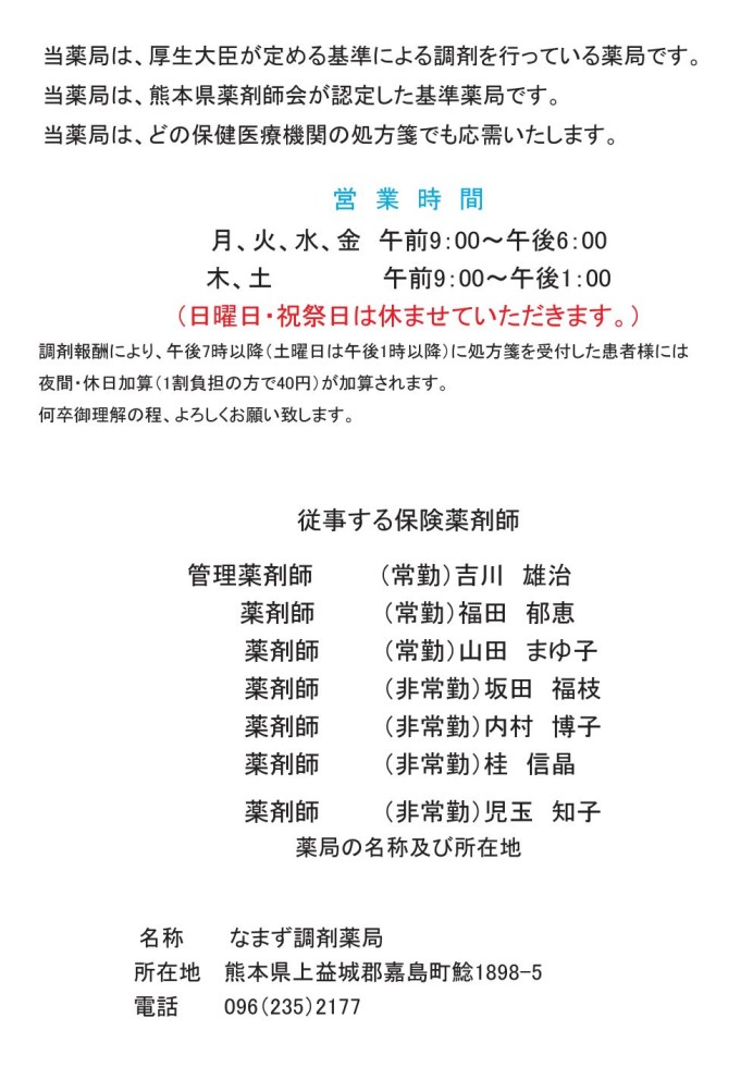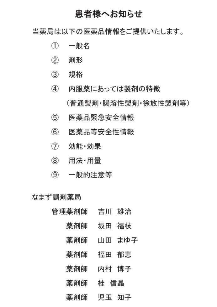 なまず調剤薬局からお知らせ