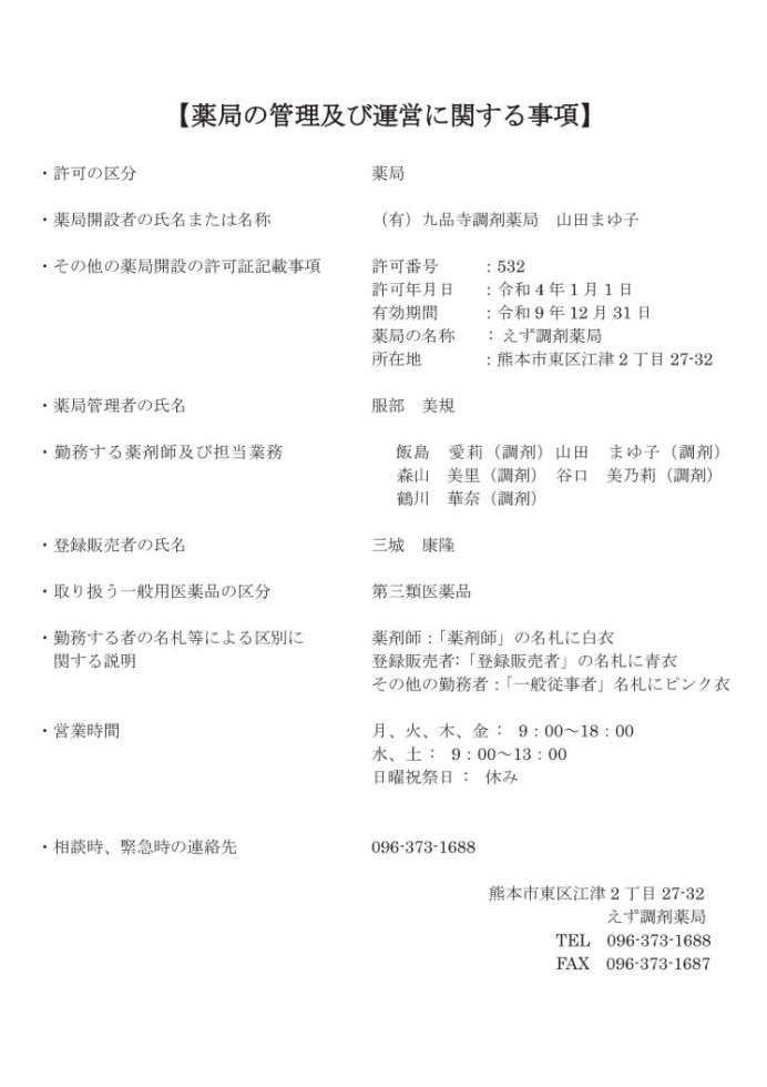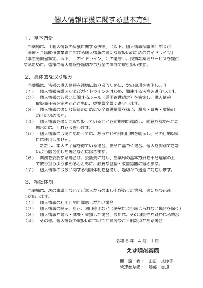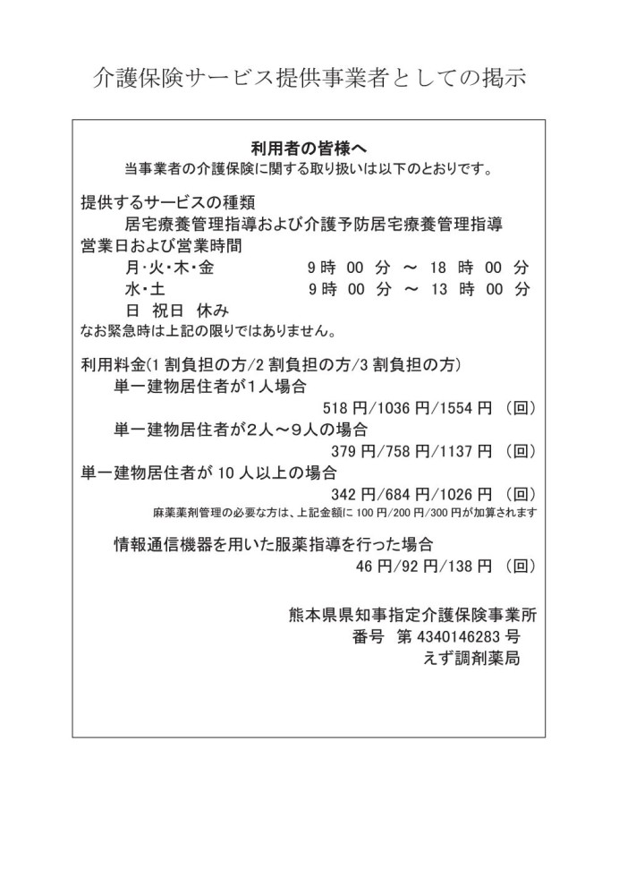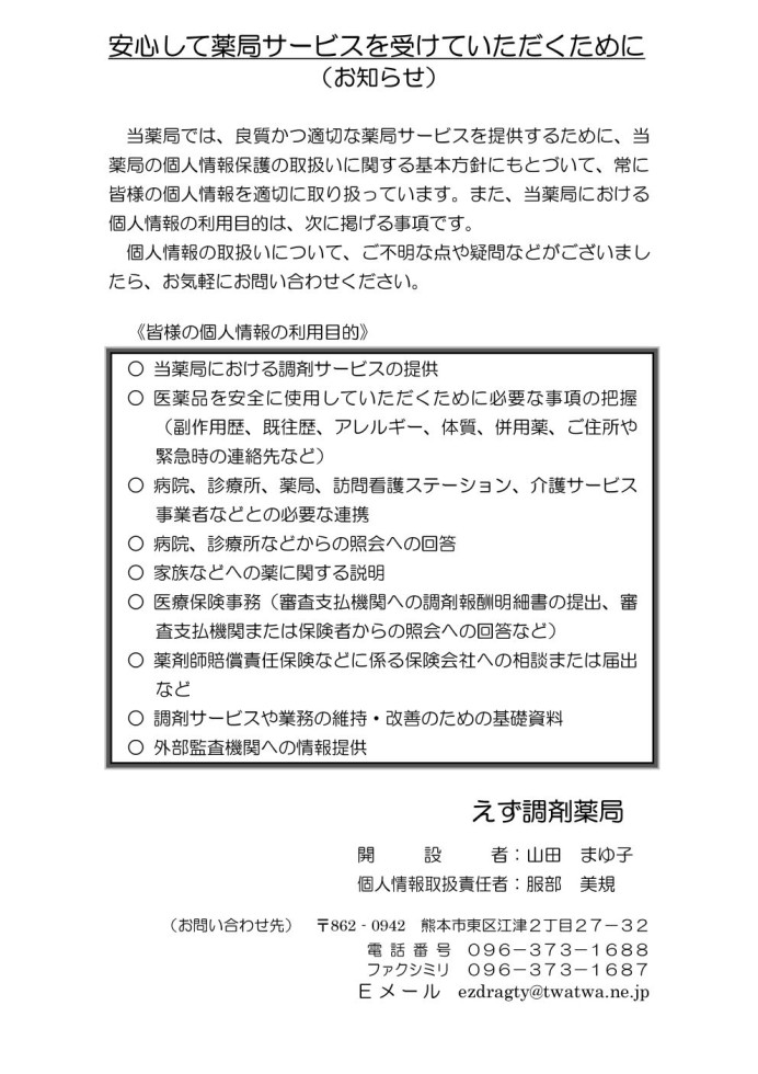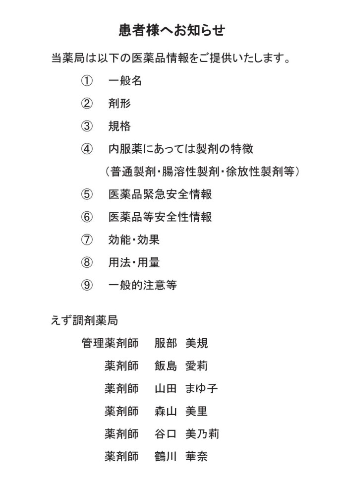 えず調剤薬局からのお知らせ